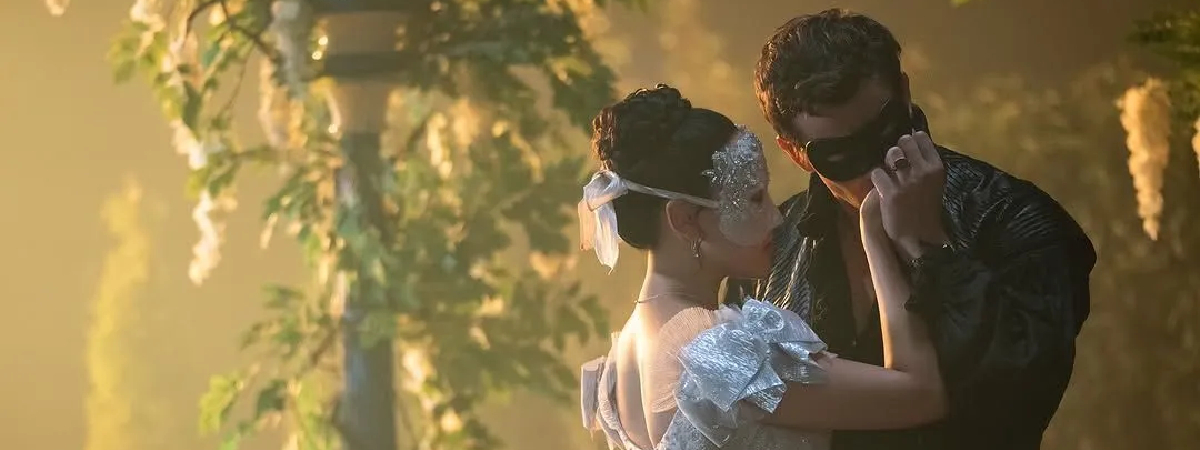 Há alguns meses, o público pôde conferir uma pequena prévia do baile de máscaras que mostrará o encontro de Benedict Bridgerton (Luke Thompson) com o alter ego de Sophie Beckett (Yerin Ha).